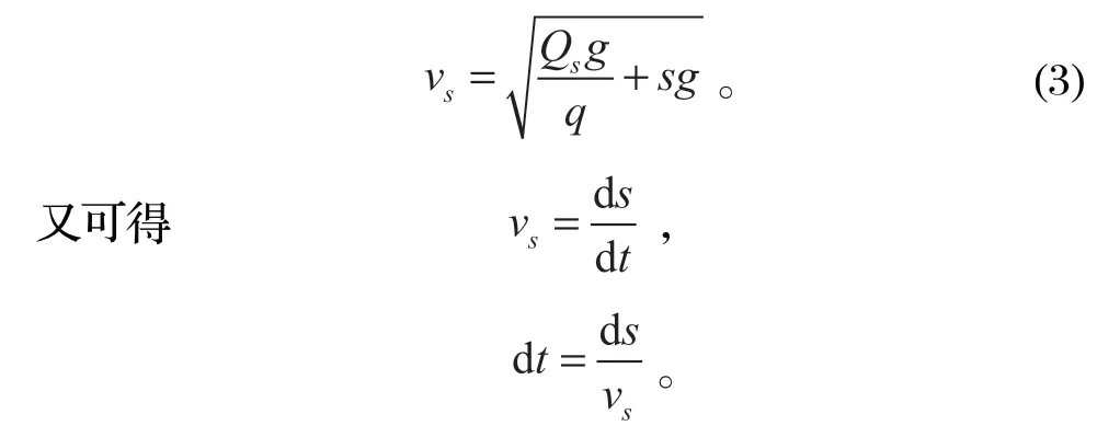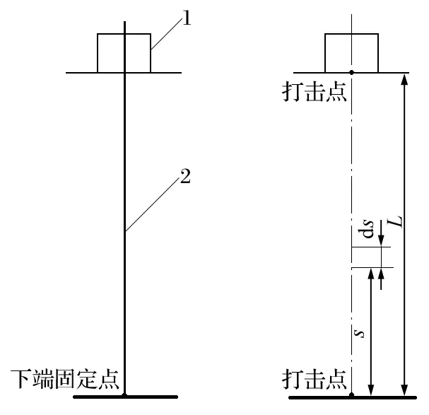 在井口附近位置,对罐道绳某一点施加一垂直冲击力,使罐道绳产生横向振动。振动波在钢丝绳上的传递速度与钢丝绳所受张力的关系如下: