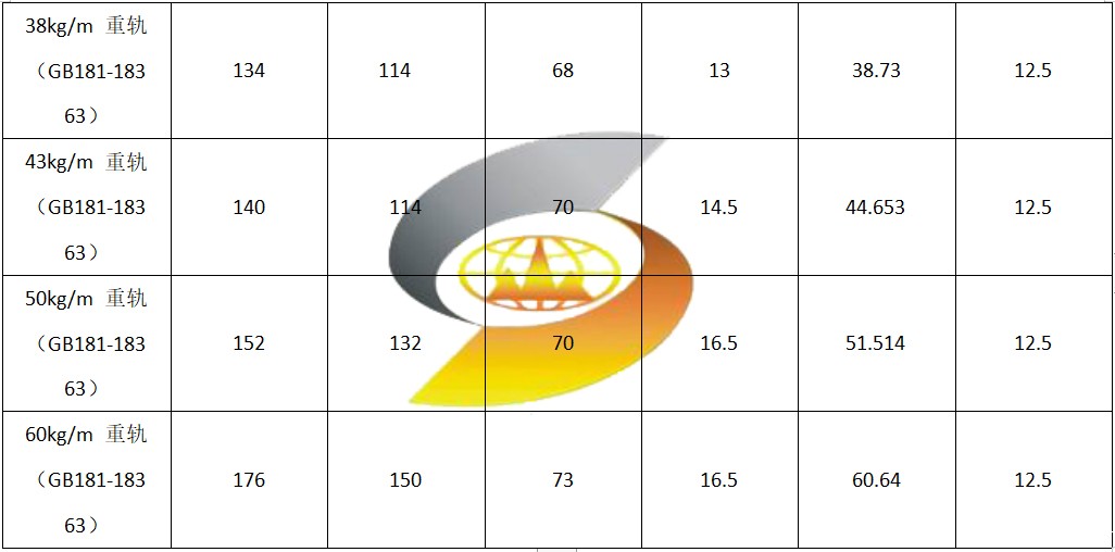 不同规格的钢轨具体尺寸会有所差异,例如38KG钢轨的参数为:轨高度140mm、轨底面宽度114mm、轨头面宽度70mm、轨腰厚度14.5mm、长度12.5m。