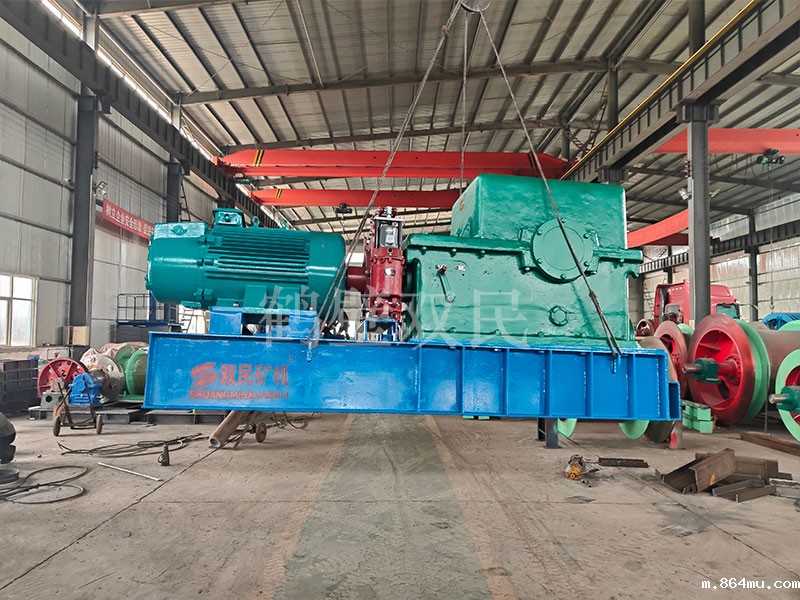 本绞车主要用于煤矿、金属矿和非金属矿竖井井筒掘进时悬吊吊盘、水泵、水管、注浆泵、风筒等掘进设备和张紧稳绳,该绞车系双钢丝绳悬吊。将减速机上的差动手把放在差动位置,若张紧稳绳,可使两根稳绳的张紧力保持相等;