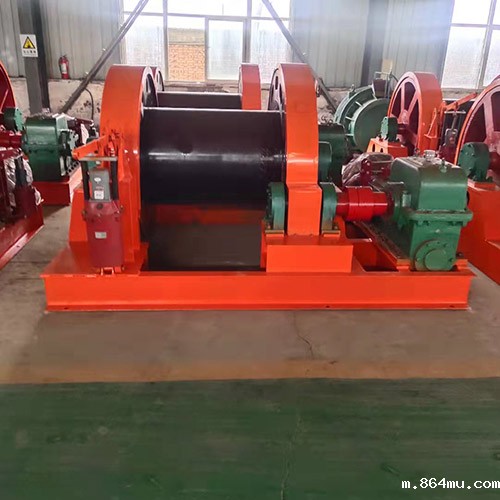 凿井绞车车结构为缠绕式,主要由主轴装置、减速器、带制动轮的弹性联轴器、工作制动器、制动器、机座、电动机等部件组成。