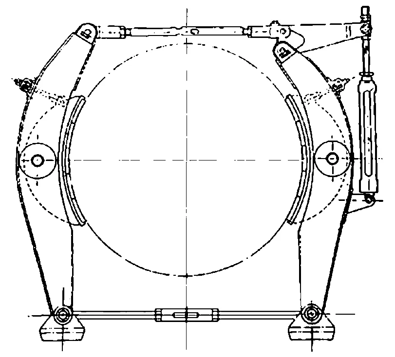 (3)综合闸 早期国产的 JKA 型提升机,旧角移式闸瓦存在磨损不均问题,其制动系统的改造采用综合闸(见图 1),以减少闸瓦磨损,延长闸瓦使用寿命。