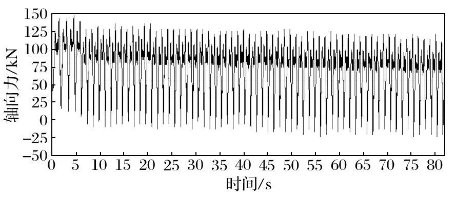 图4 左罐重载上提时的轴向力曲线