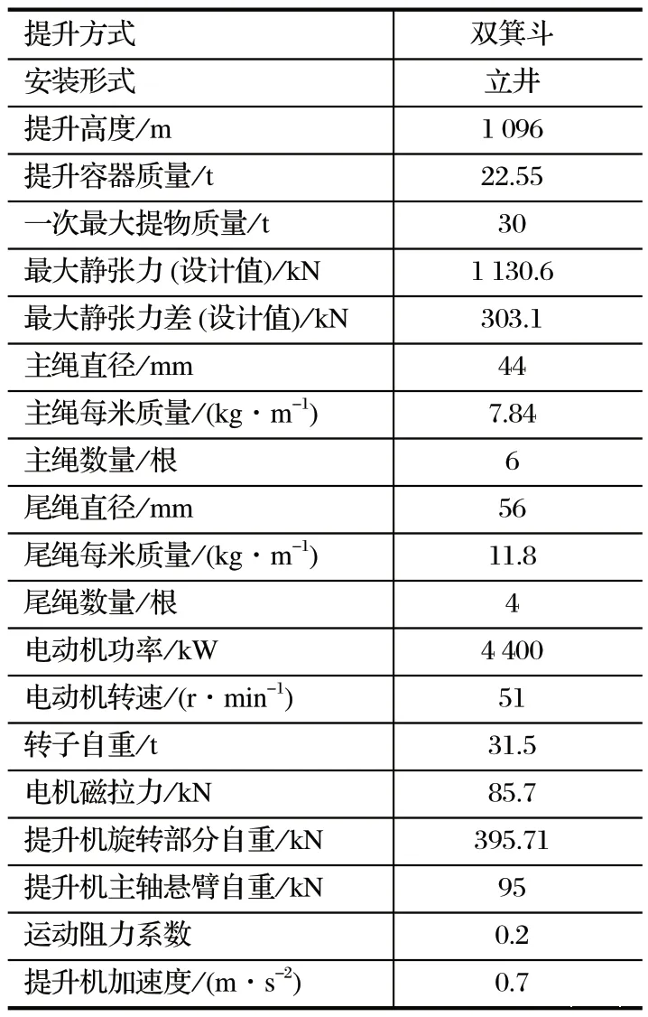 表1 提升系统的参数