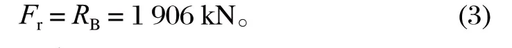根据提升机受力、相关尺寸及提升系统参数,可以得出:传动侧轴承处的支反力 RB=1 906 kN,且认为支反力 RB 和径向力 Fr 大小相同,即