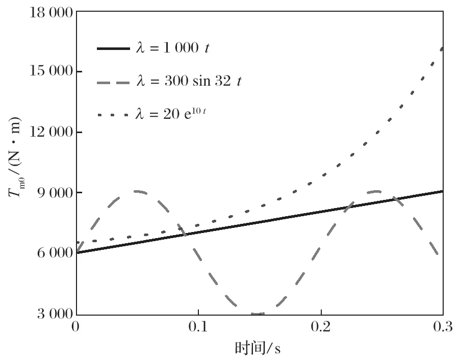 式中:Tm0 为输出转矩,N·m;Tm 为稳定输出转矩,N·m;Km0 为刚度系数;λ 为波动系数。