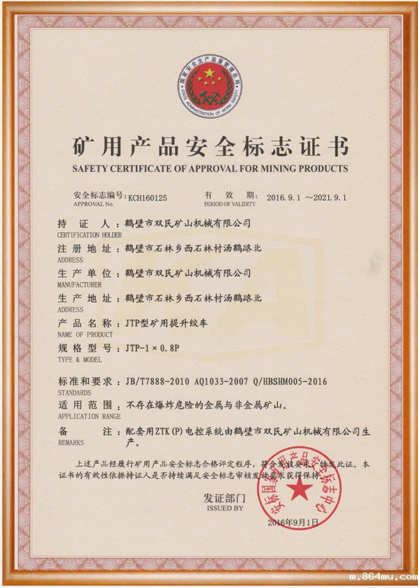 矿用产品安全标志证书